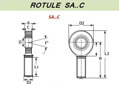 EMBOUT A ROTULE MALE SANS ENTRETIEN Type SAC SA..C equivalence : GAR..UK INA et SA..C SKF SA..C 2RS equivalence : GAR..UK 2RS INA et SAA..TE 2RS SKF