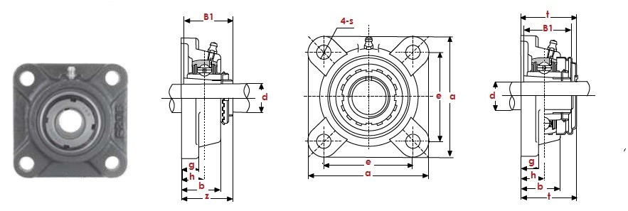 | Palier applique 4 trous - Type UKF 205 - Pour arbre ø 20 mm | ||||||||||||||||||