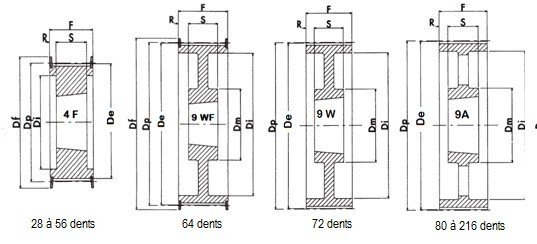 | Nom Produit | Référence | Dents | Moyeu | S | Diam max | Fl | R | Dm | Df | Type | F | Di | De | Dp | Prix | Disponibilité | Quantité | Panier |