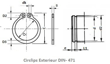 Circlip extérieur - Pour arbre ø 180 mm ø Int. 170.5 mm ø Ext. 197.5 mm - Epaisseur 4 mm